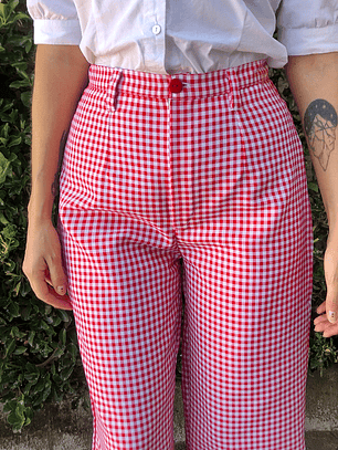 Top atado adelante por dos amarras, con mangas farol y de calce relajado.