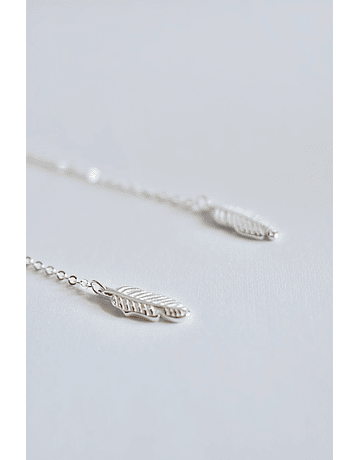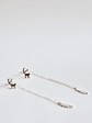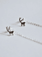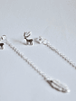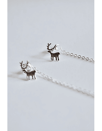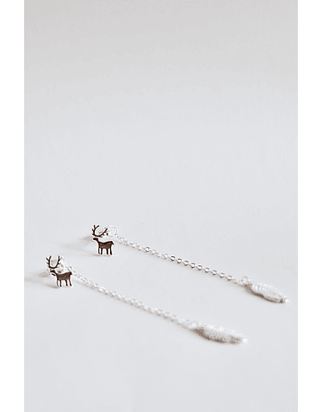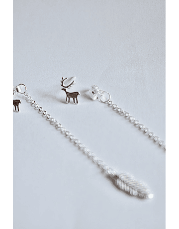 Aros de plata 925 con forma de Reno con vástago, de su tornillo cuelga cadenita que en su extremo termina con una forma de pluma.