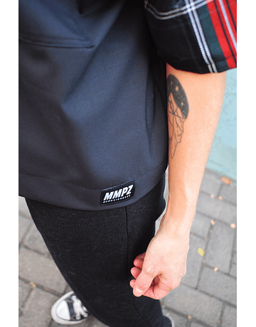 Corte recto y oversize, con cierre frontal, y bolsillo parche delantero.
