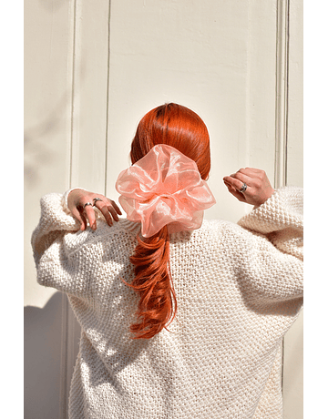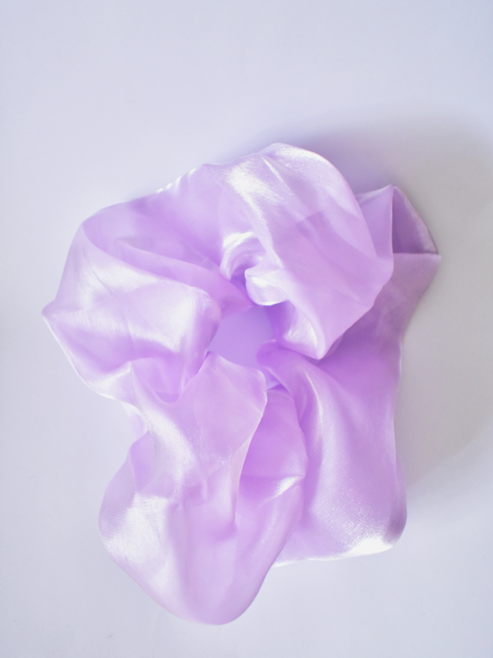 Scrunchies en organza pastel y en raso estampado, abultados y más grandes que nuestra versión maxi, un accesorio para levantar cualquier outfit!